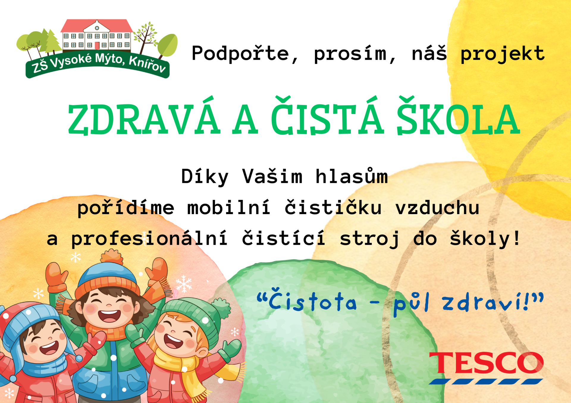 Vhozením žetonku naproti pokladnám v Tescu podpoříte náš projekt "Zdravá a čistá škola".