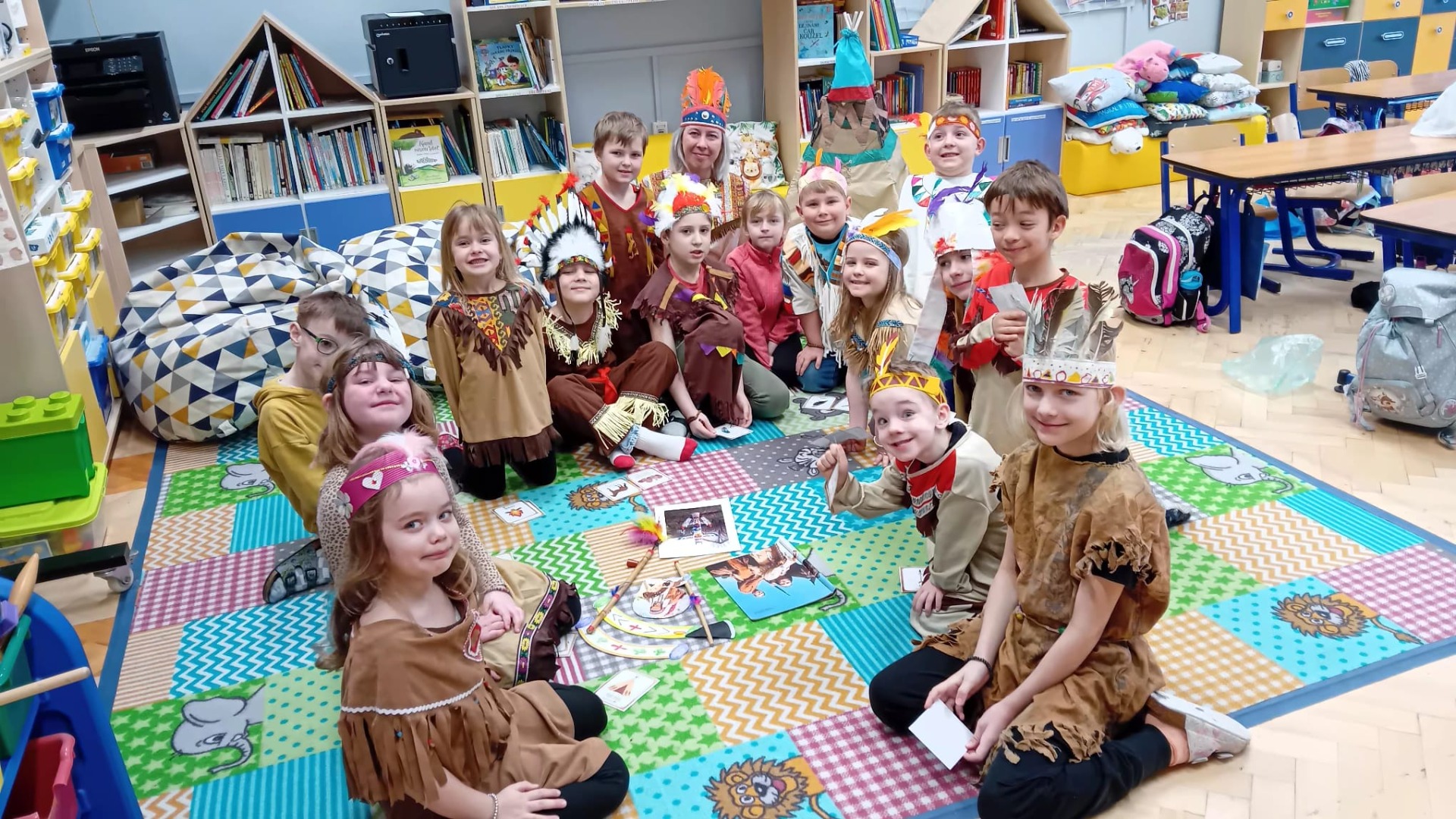 Prvňáci se pustili do oblíbeného projektu "Počítání s Indiány". Třída se proměnila v malou indiánskou vesničku a téma je bude provázet všemi předměty.